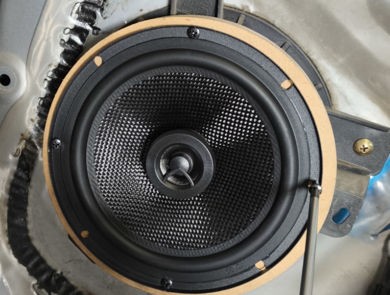 Сам фильтр для твитера представляет собой единственный конденсатор, закрепленный с нижней стороны высокочастотника. Получилось достаточно компактно, снаружи особо ничего лишнего не маячит. Нормально.